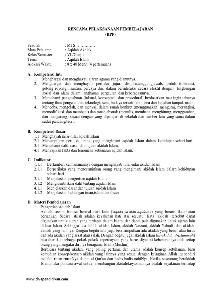 Cd rpp aqidah akhlak perangkat pembelajaran mi kurikulum 2013.